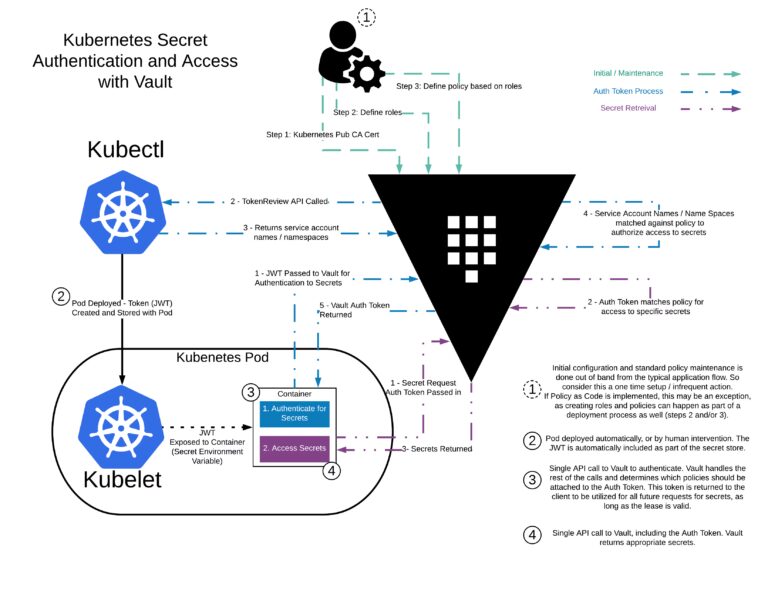 ابزار HashiCorp Vault: استفاده از HashiCorp Vault برای مدیریت سکرتها و رمزنگاری آنها به شما این امکان را میدهد که اطلاعات حساس را به طور ایمن ذخیره و مدیریت کنید. Vault بهطور خاص برای ایجاد و نگهداری سکرتها، مانند API keys، passwords و certificates طراحی شده است.