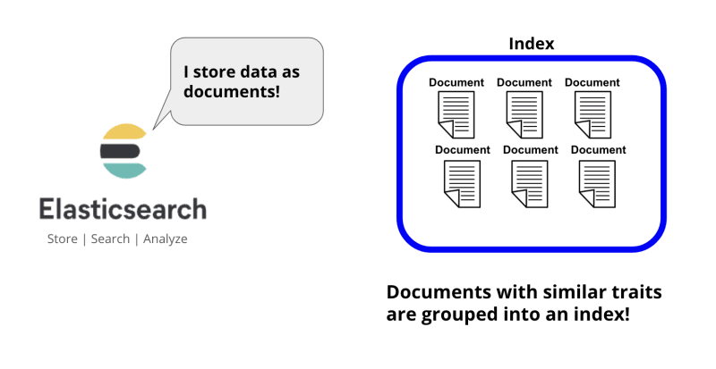 داکیومنتها توی الستیک سرچ آبجکتها به فرمت JSON هستن که توی ایندکسهای الستیک ذخیره میشن و میتونیم اونها رو واحد پایهای استورج بدونیم. داکیومنتها رو میشه معادل یک ردیف از جدول توی دنیای دیتابیس های رابطه ای دونست.